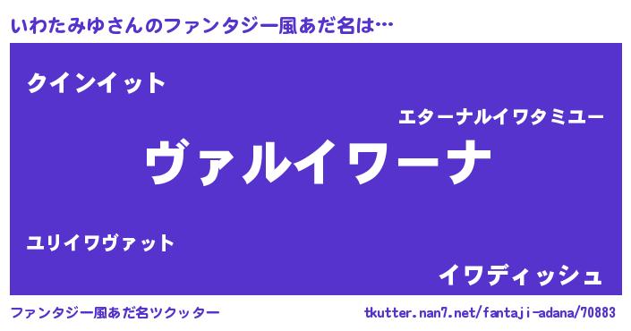 | 男性向けラノベタイトル風あだ名 | 『魔弾の王といわたみゆ』 |