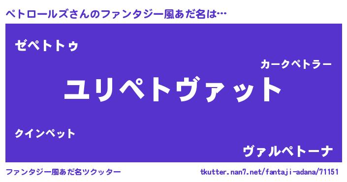 | ポケモン風あだ名 | 『ペトキング』『ペトセウス』 |
