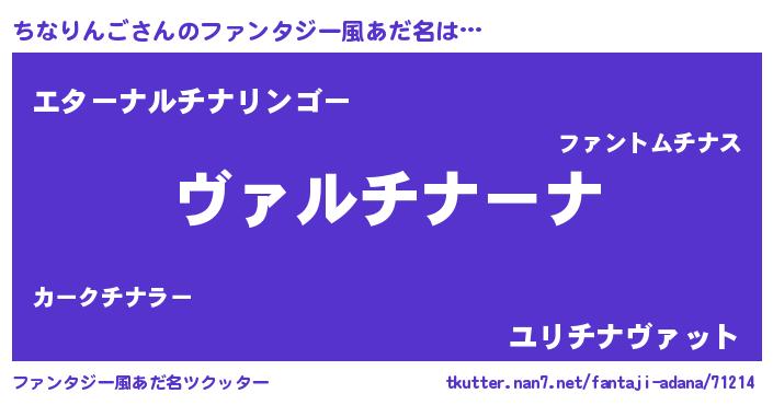 | 女子向けラノベタイトル風あだ名 | 『乙女ゲームの破滅フラグしかない悪役ちなりんごに転生してしまった…』 |