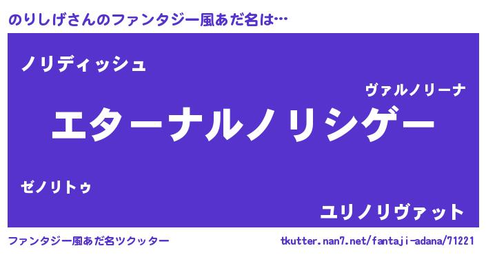 | 男性向けラノベタイトル風あだ名 | 『うちの娘の為ならば、俺はもしかしたらのりしげも倒せるかもしれない。』 |