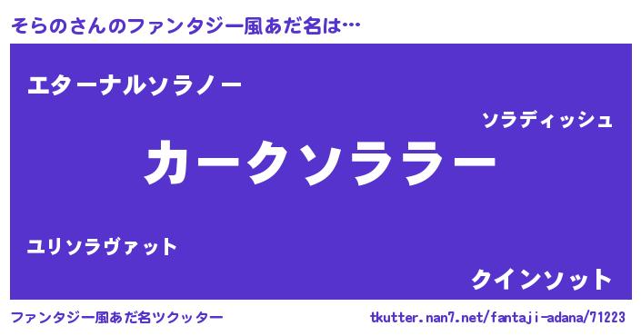 | 男性向けラノベタイトル風あだ名 | 『うちのそらのが世界を掌握している!』 |