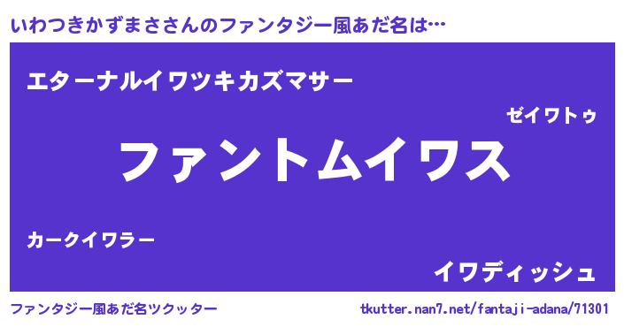 | ヒーロー風カッコイイあだ名 | 『魔戒騎士イワ』『ネオイワツキカズマサ』 |