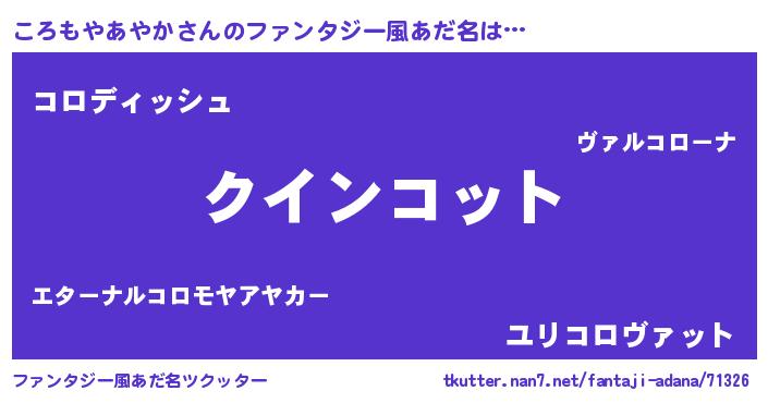 | 可愛いあだ名 | 『ころちゅっちゅ』『ころもやあやかママ』 |