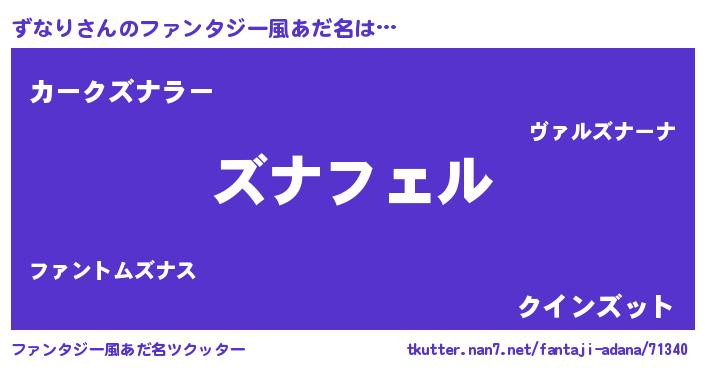 | 男性向けラノベタイトル風あだ名 | 『ずなりに滅ぼされるだけの簡単なお仕事です』 |