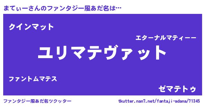 | 男性向けラノベタイトル風あだ名 | 『マティースレイヤー』 |