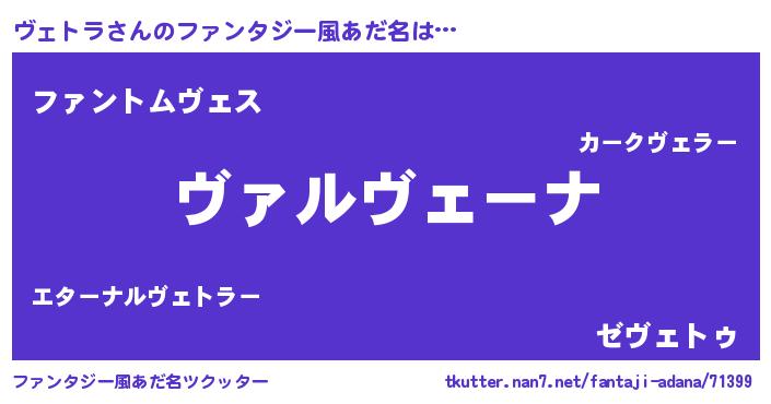 | 胡散臭い通販商品みたいなあだ名 | 『あなたにだけ特別に提供する世界で10本だけ現存している希少なブランデー…その名も「ヴェトラ」』 |