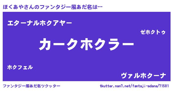 | 男性向けラノベタイトル風あだ名 | 『緋弾のホクアヤ』『魔弾の王とほくあや』 |