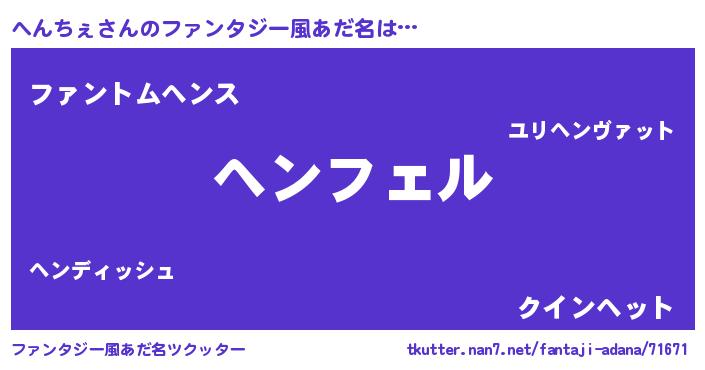 | 自動車の名前っぽいあだ名 | 『ヘンティマ』『ヘルトンパン』 |