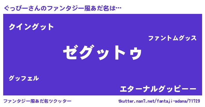 | 男性向けラノベタイトル風あだ名 | 『Re:ぐっぴーから始める異世界生活』 |