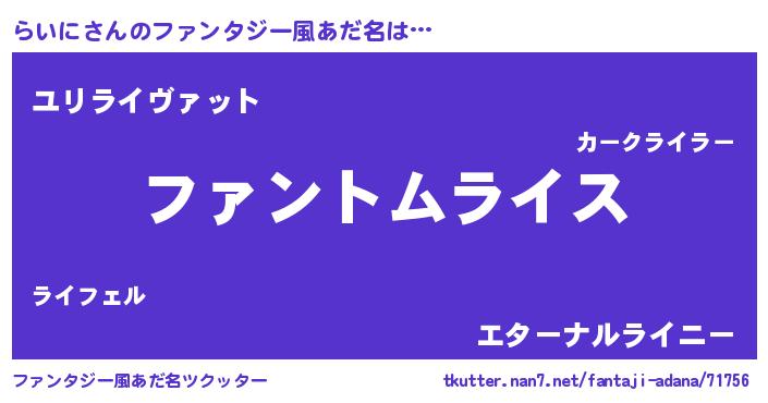 | 女子向けラノベタイトル風あだ名 | 『らいにの卵を拾いまして』 |