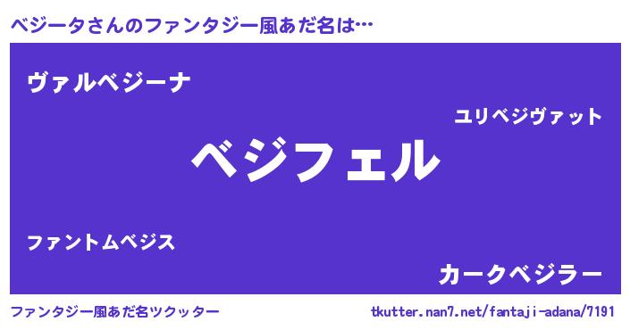 | 胡散臭い通販商品みたいなあだ名 | 『必ず成功する霊験あらたかなお札…その名も「べジータ」』 |