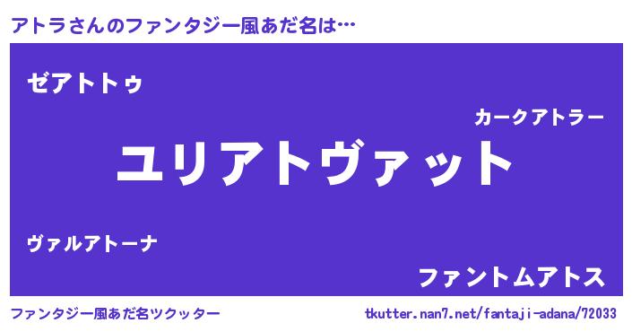 | ヒーロー風カッコイイあだ名 | 『最強戦士アトラ』『天弓騎士アト』 |