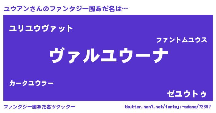| ヒーロー風カッコイイあだ名 | 『仮面ユウダー』『最強戦士ユウアン』 |