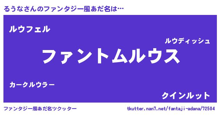 | ポケモン風あだ名 | 『ルウゴンZ』『ヒルウナ』『ゼニルウ』 |