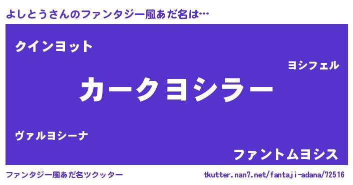 | 欧米人風あだ名 | 『よしとう・ステッグマイヤー』 |