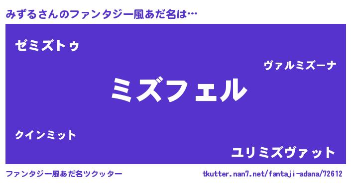 | 自動車の名前っぽいあだ名 | 『ミズティマ』『メルミズス・ミンツ』 |