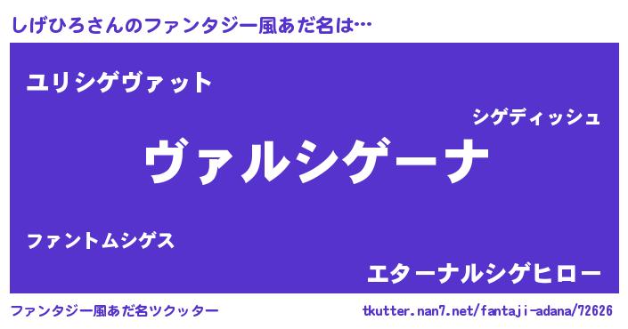 | 男性向けラノベタイトル風あだ名 | 『この素晴らしい世界にしげひろを!』 |