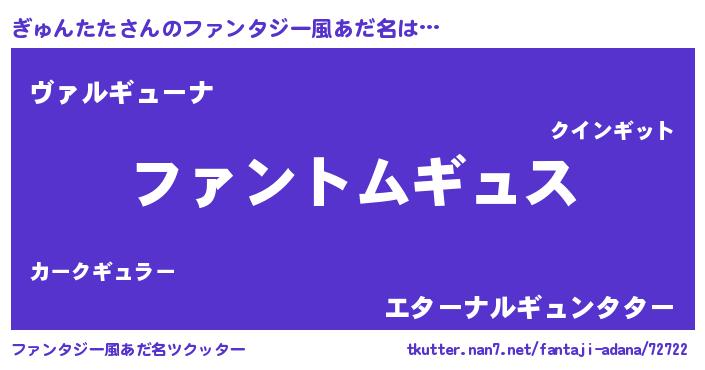 | 胡散臭い通販商品みたいなあだ名 | 『信頼と実績のサプリメント…その名も「ぎゅんたた」』 |
