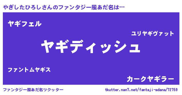 | ヘコむあだ名 | 『やぎしたひろし(遠い目)』『やぎふぇ~』 |