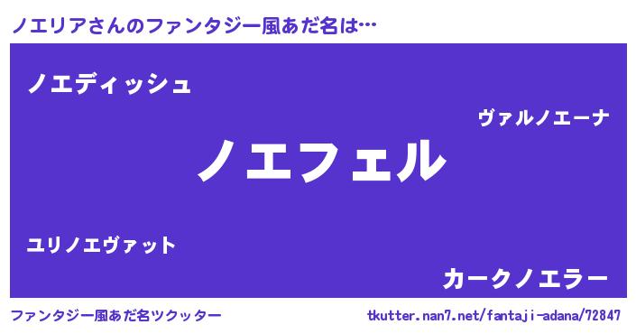 | 女子向けラノベタイトル風あだ名 | 『ノエリア姫と円卓の騎士』 |