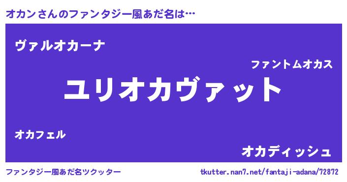 | 意味不明あだ名 | 『めかぶ科オカン属』『永久保存オカン』 |