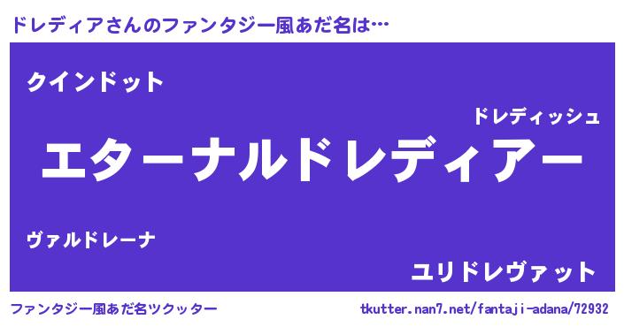 | 欧米人風あだ名 | 『ドレディアクリステル』 |