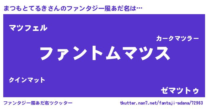 | ポケモン風あだ名 | 『マツゴンZ』『ヒマツモトテルキ』 |