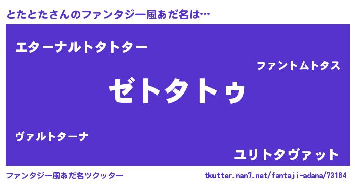 | 意味不明あだ名 | 『自称とたとた』『とたとたフォーエバー』 |