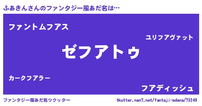 | 意味不明あだ名 | 『自称ふあきん』『永久保存ふあきん』 |