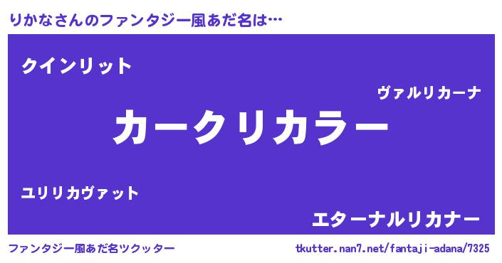 | 欧米人風あだ名 | 『りかな・ステッグマイヤー』 |