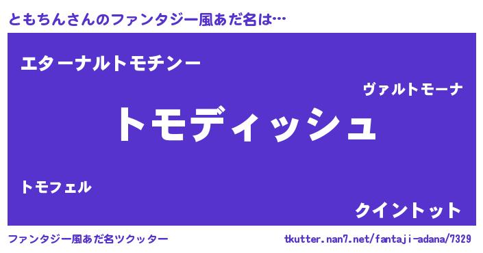 | 女子向けラノベタイトル風あだ名 | 『異世界で失敗しない100のともちん』 |