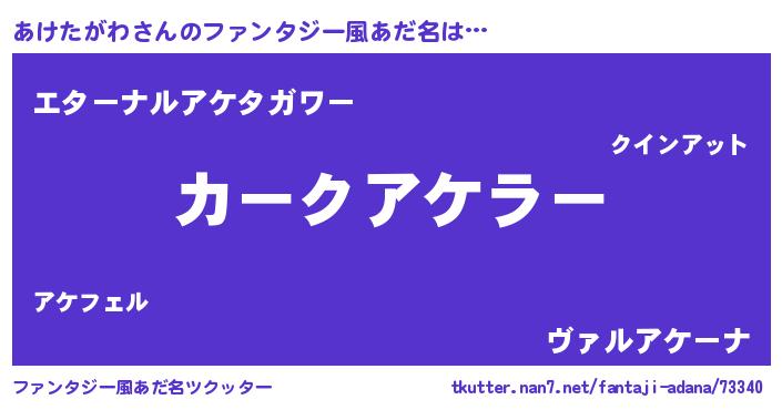 | 男性向けラノベタイトル風あだ名 | 『緋弾のアケタガワ』『あけたがわの憂鬱』 |