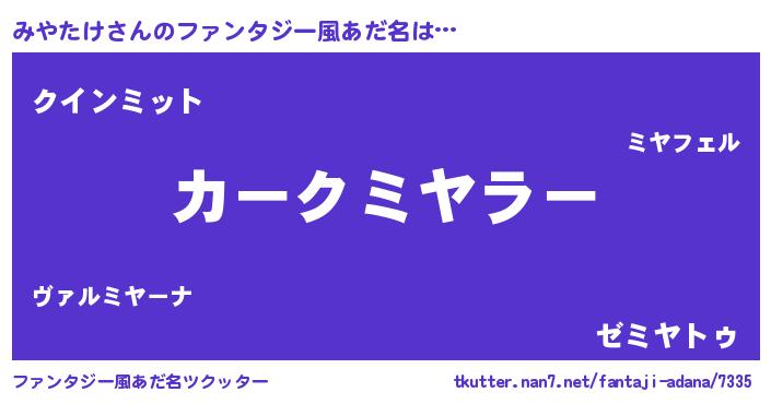 | 男性向けラノベタイトル風あだ名 | 『緋弾のミヤタケ』『みやたけの憂鬱』 |