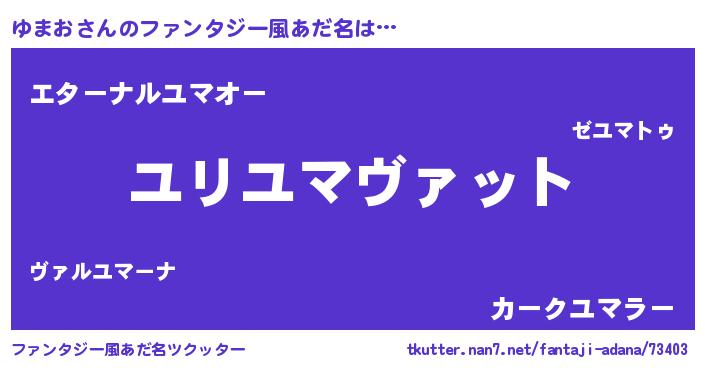 | 男性向けラノベタイトル風あだ名 | 『転生したらゆまおだった件』 |