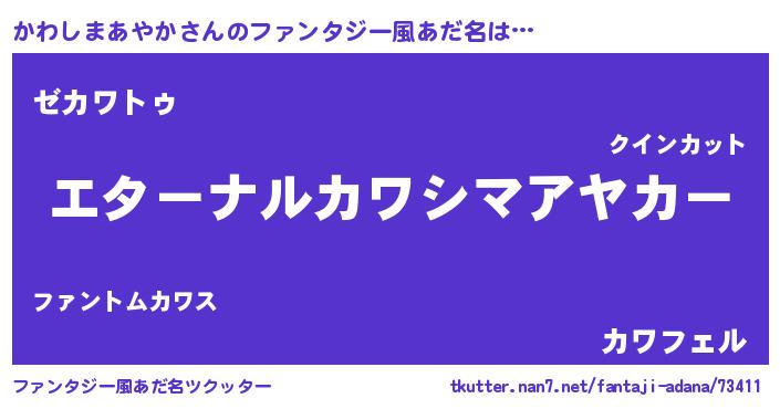 | 男性向けラノベタイトル風あだ名 | 『やはりかわしまあやかの青春ラブコメはまちがっている 』 |