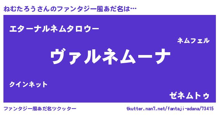 | 女子向けラノベタイトル風あだ名 | 『乙女ゲームの破滅フラグしかない悪役ねむたろうに転生してしまった…』 |