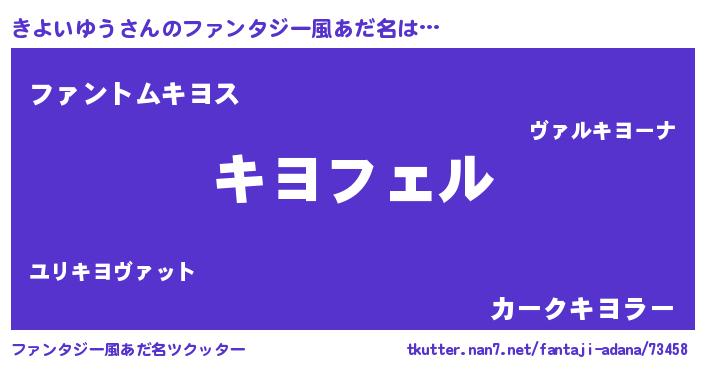 | 男性向けラノベタイトル風あだ名 | 『キヨイユウアートオンライン』 |