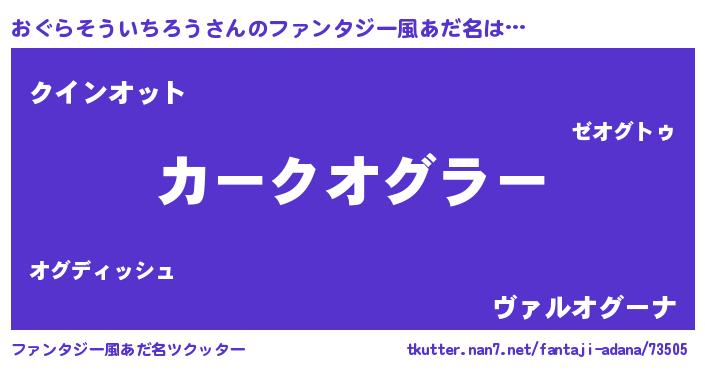 | 男性向けラノベタイトル風あだ名 | 『おぐらそういちろうに滅ぼされるだけの簡単なお仕事です』 |