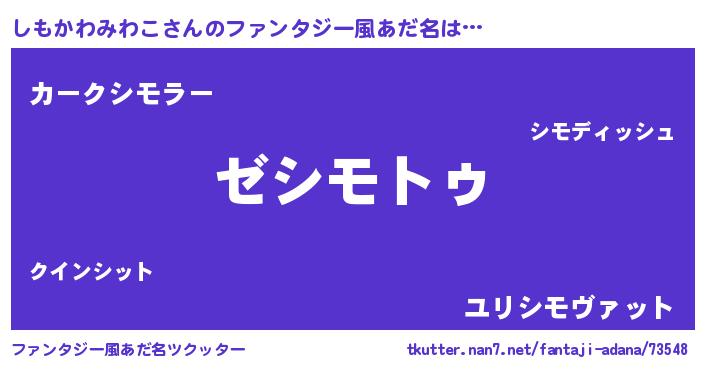 | 男性向けラノベタイトル風あだ名 | 『魔法科高校のしもかわみわこ』 |