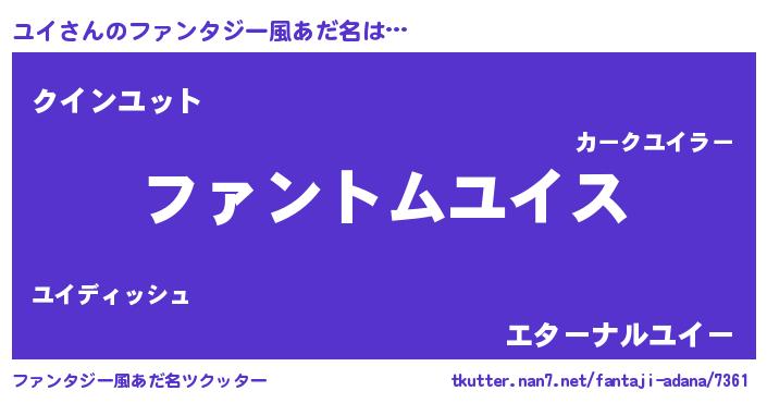 | ポケモン風あだ名 | 『ヒユイ』『ユックウザ』『ユイダネ』 |