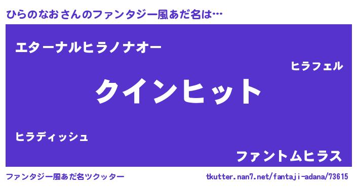 | ヒーロー風カッコイイあだ名 | 『正義の使者ひらのなお』『暗黒騎士ヒラ』 |