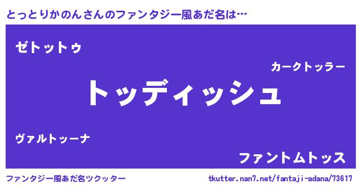| ヒーロー風カッコイイあだ名 | 『ネオトットリカノン』『暗黒騎士トッ』 |