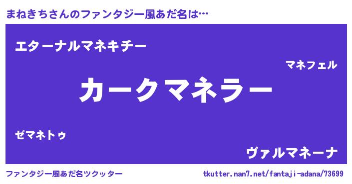 | 男性向けラノベタイトル風あだ名 | 『緋弾のマネキチ』『まねきちの憂鬱』 |