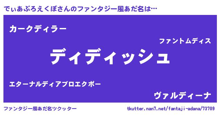 | 男性向けラノベタイトル風あだ名 | 『でぃあぶろえくぼという概念が存在しない退屈な世界 』 |