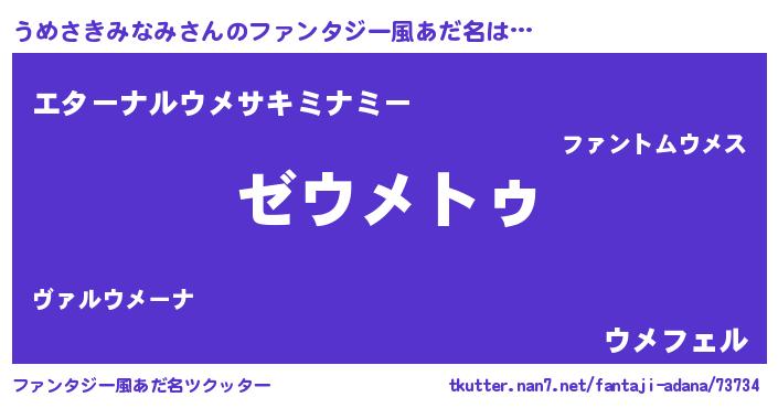 | 女子向けラノベタイトル風あだ名 | 『うめさきみなみなんてお断りですっ。』 |