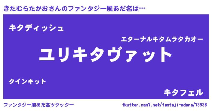 | 男性向けラノベタイトル風あだ名 | 『転生したらきたむらたかおだった件』 |