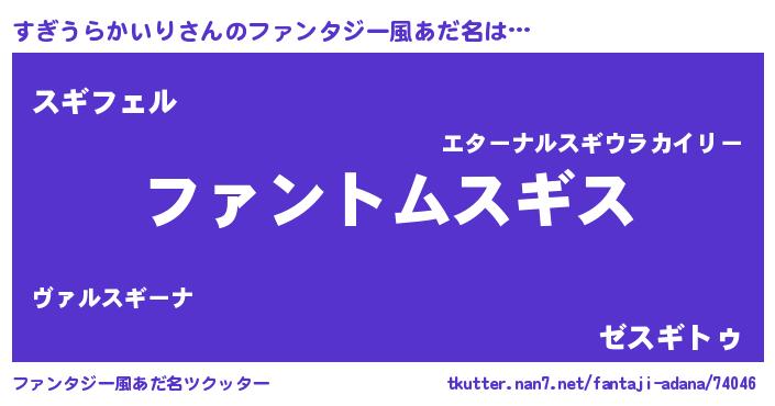 | 男性向けラノベタイトル風あだ名 | 『すぎうらかいりの嫁は女の子じゃないと思った?』 |
