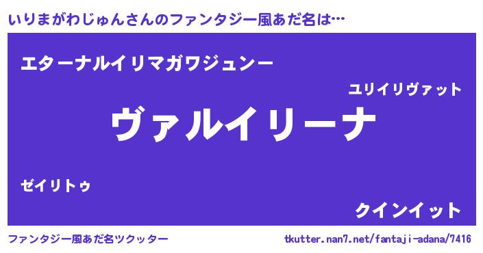 | 女子向けラノベタイトル風あだ名 | 『いりまがわじゅんが死なない童話 林檎のいりまがわじゅんの診療簿』 |