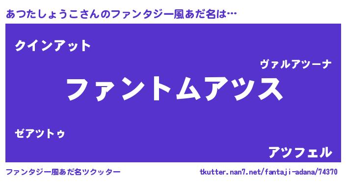| 意味不明あだ名 | 『とにかく怪しいあつたしょうこ』 |