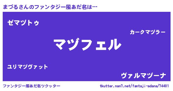 | 男性向けラノベタイトル風あだ名 | 『まづるの憂鬱』『はたらくまづるさま!』 |